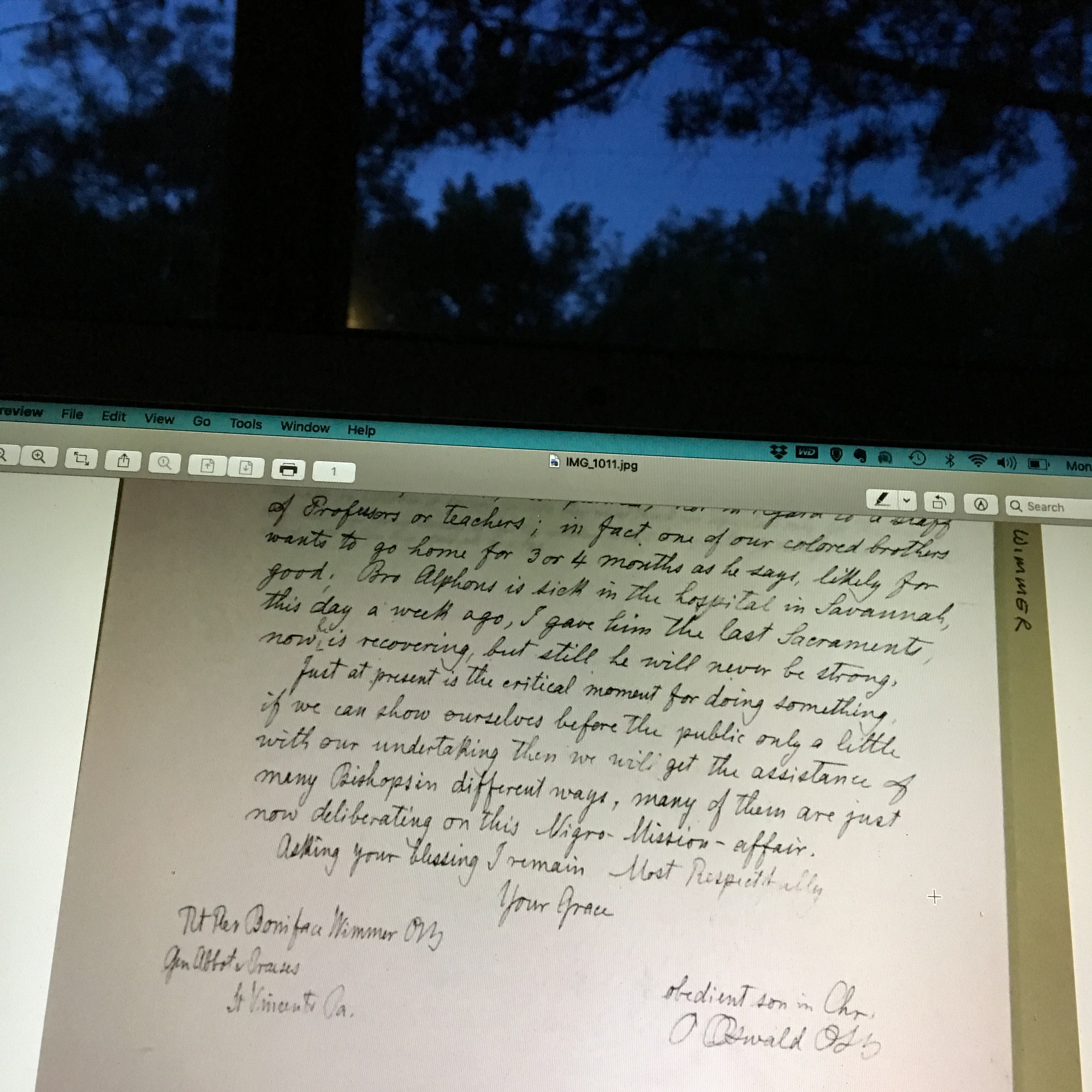 Bro Alphons is sick in the hospital in Savannah, this day a week ago, I gave him the last Sacraments, now he is recovering, but still he will never be strong.”